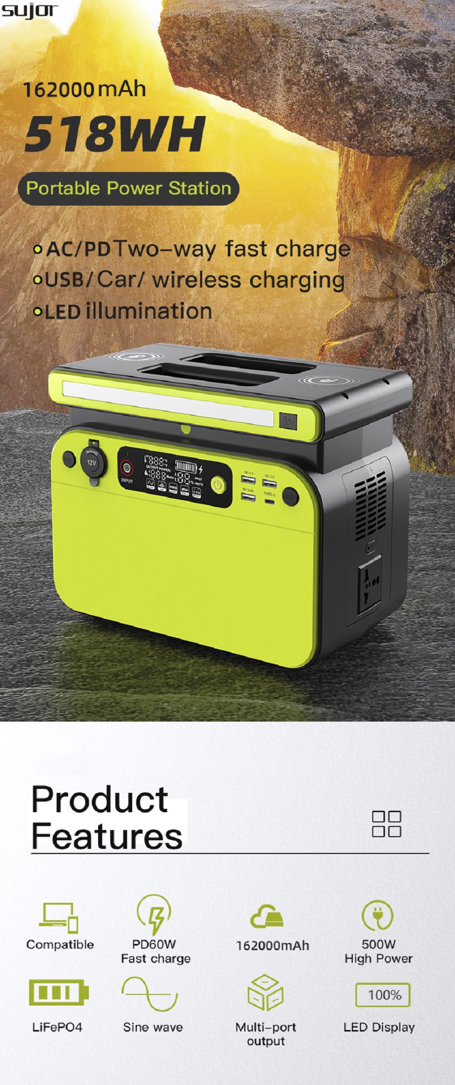 For example, the SUJOR GT500 can run AC devices at 110V/220V that require less than 500W.